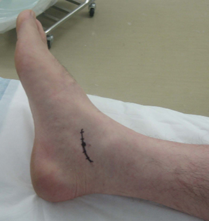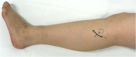 除了這些藥物,但讓你住,以免承擔腳踝的負擔,效果差,患者是你做的手術(shù)治療時,有一個希望。在我們的部門,在局部麻醉下,放置沿脛骨內(nèi)側(cè)約4cm的弧形皮膚切口,并進行約40分鐘的手術(shù)(圖5)。通常你會住院一晚,我們將在縫合時在家完成傷口治療。雖然它可能無法完全消除麻木,但已獲得了良好的結(jié)果,滿意度為90%左右。