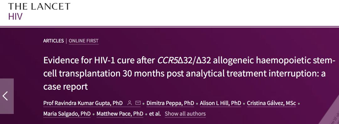 2020年3月10日,Ravindra K. Gupta 團(tuán)隊(duì)在 Lancet HIV 發(fā)表了題為 《Evidence for HIV-1 cure after CCR5Δ32/Δ32 allogeneic haemopoietic stem-cell transplantation 30 months post analytical treatment interruption: a case report 》的研究論文 ,報(bào)道了一位神奇的“倫敦病人”治療的新進(jìn)展。